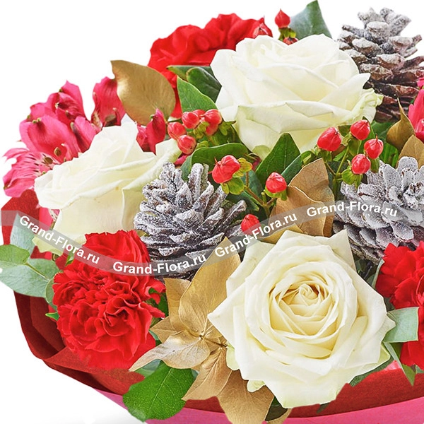 С Новым Счастьем! - букет из роз и гвоздик